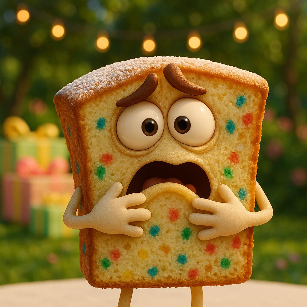 Once upon a bake, there was a confetti cake who rushed out of the oven for the big party—only to realize, in horror, that it had forgotten its frosting! Powdered sugar? Sure. Confidence? Not so much. The poor cake tried hiding behind a stack of presents, mortified that everyone would see its sprinkle freckles and golden crumb out in the open.