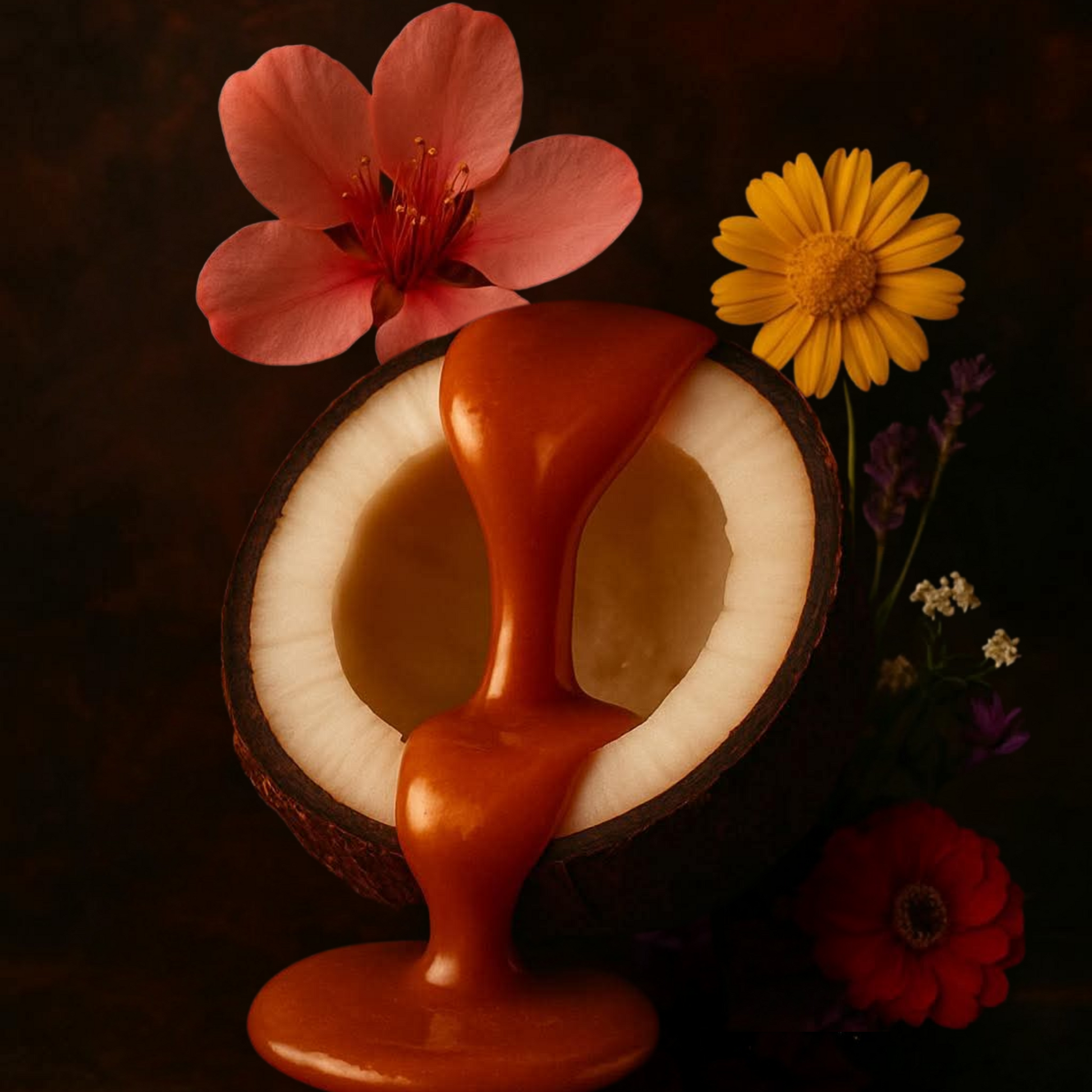 This fragrance smells like a soft golden daydream—delicate peach blossom and wildflowers drifting into rich caramel and creamy vanilla, all melting into airy coconut and soft musk for a light, sweet, and comforting finish.